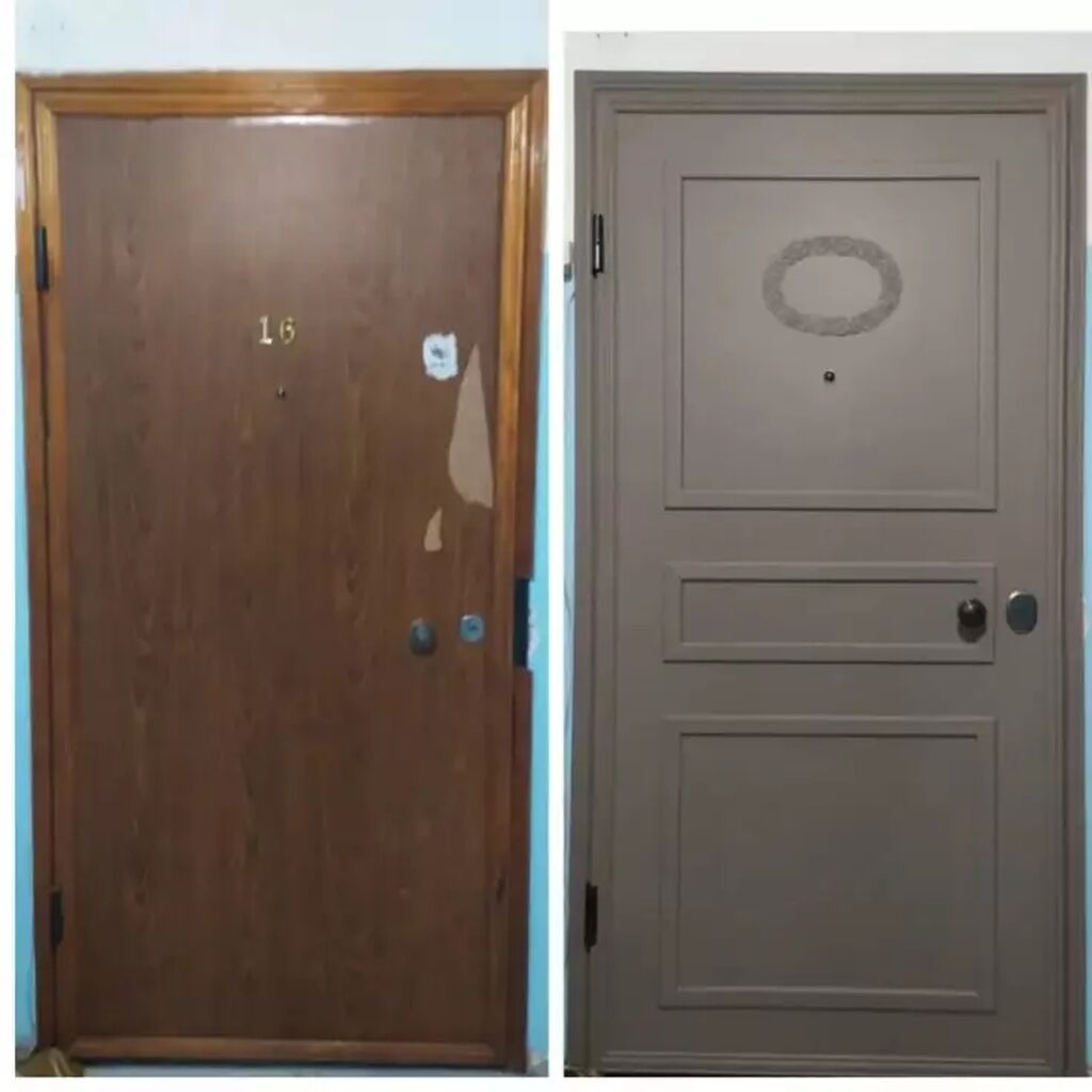 Metall giriş qapılarının dekorativ bəzədilməsi və yenilənməsi xidməti.- Mövcud dəmir/qara giriş qapısının üzərində dekor panellər və rellefli frezlər tətbiq olunur, klassik və modern dizaynlar hazırlanır.- Rəng seçimi: geniş RAL palitrası üzrə mat və ya yarımat boya ilə rəngləmə.- Səthlər: hamar, panelli (çərçivəli) kompozisiyalar, ornamental elementlər; gözlük (vizor) saxlanılır və ya yenilənir.- Aksesuarların uyğunlaşdırılması: tutacaq, qulf zonası, gözlük çevrəsi, menteşələr – mövcud yerlərə səliqəli inteqrasiya.- Səth hazırlanması: təmizləmə, astarlama, davamlı boya örtüyü; mexaniki təsirlərə və gündəlik istifadəyə davamlılıq.- İstilik və səs izolyasiyasına mənfi təsir göstərməyən nazik, möhkəm dekor texnologiyası.- Daxili və xarici tərəfin hər ikisinin bəzədilməsi mümkündür; dizaynlar interyerə uyğunlaşdırılır.- Mənzillər və ofislər üçün estetik təkmilləşdirmə: sadə metal qapının zərif panelli qapıya çevrilməsi.Şəkillərdə nümunə öncə/sonra nəticələri göstərilir. Dizayn, rəng və naxışlar istəyə uyğun tərtib olunur.Gizlət