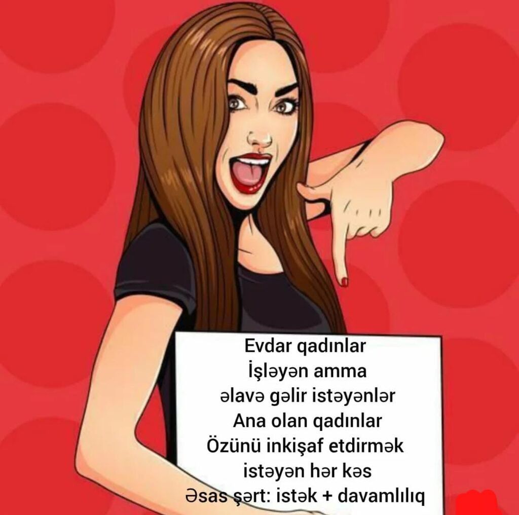 Qadınlar üçün onlayn gəlir imkanı və şəxsi inkişaf proqramı- Evdar qadınlar, işləyən, lakin əlavə gəlir istəyən xanımlar və analar üçün uyğundur- Evdən/istənilən məkandan onlayn işləmə imkanı- Esas şərt: istək və davamlılıq- Öyrədici materiallar və mərhələli inkişaf planı- Komanda dəstəyi və yönləndirmə- Esnek qrafik: gündəlik vaxtını özün təyin et- Rəqəmsal bacarıqların artırılması, şəxsi brendin qurulması üzrə praktiki tapşırıqlarÖzünü inkişaf etdirmək və əlavə gəlir qazanmaq istəyən hər kəs üçün nəzərdə tutulub.Gizlət